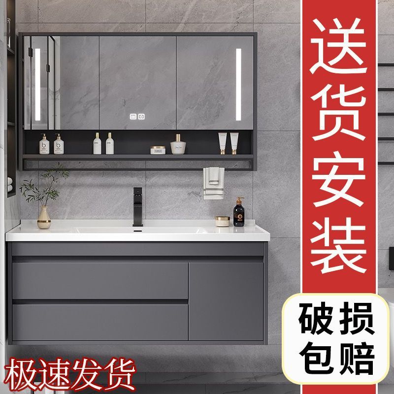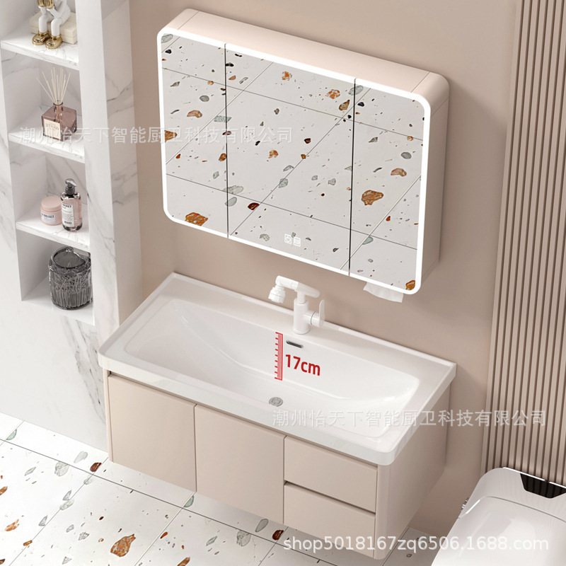 Kabinet Kamar Mandi Luar Angkasa Aluminium Honeycomb Ekstra Tebal Model Baru Kombinasi Modern Sederhana Gaya Cream Keramik Satu Tubuh Baskom Cuci Wajah