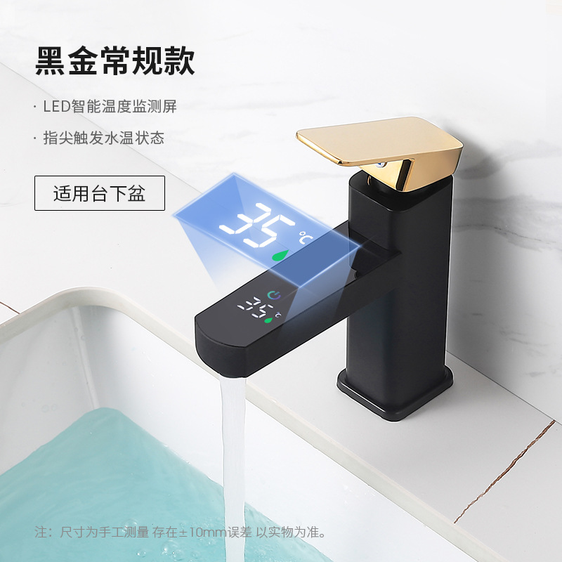 Keran Digital, tampilan suhu keran hitam emas persegi porselen putih tampilan suhu keran panas dan dingin pintar