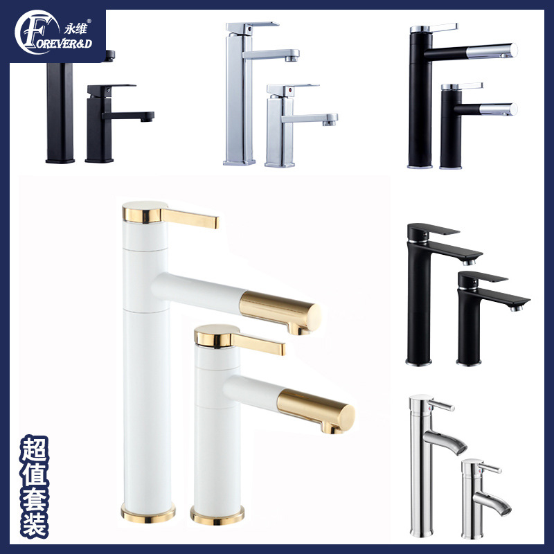 304 keran wastafel kamar mandi, keran bak cuci kamar mandi gaya Eropa cat hitam lubang tunggal pinggang kecil baja tahan karat
