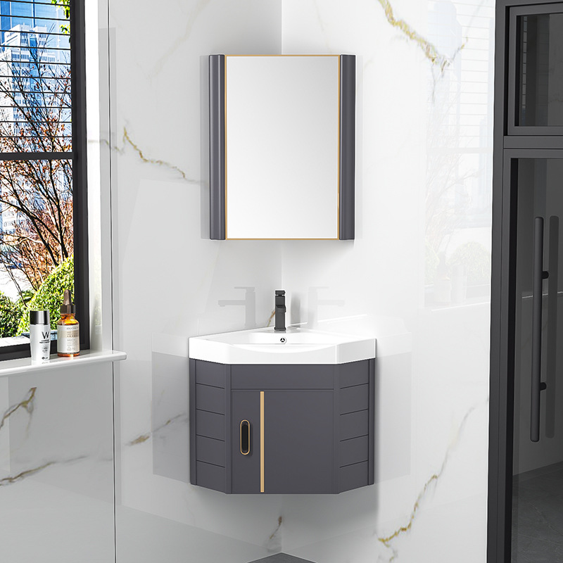 Kabinet sudut kamar mandi kabinet segitiga lemari kamar mandi wastafel sederhana meja cuci apartemen kecil sudut kabinet kombinasi