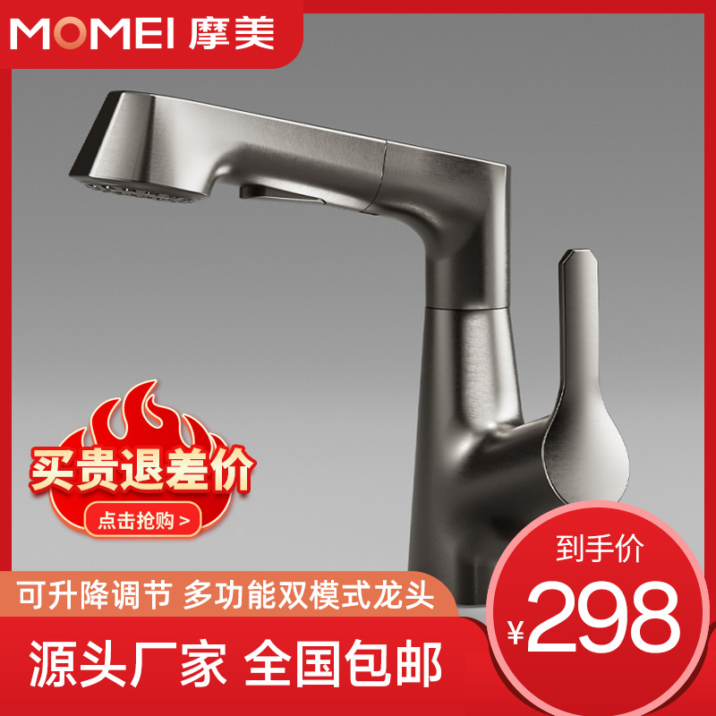 Keran tarik masuk dua gigi, keran tarik keluar lubang tunggal, keran wastafel panas dan dingin