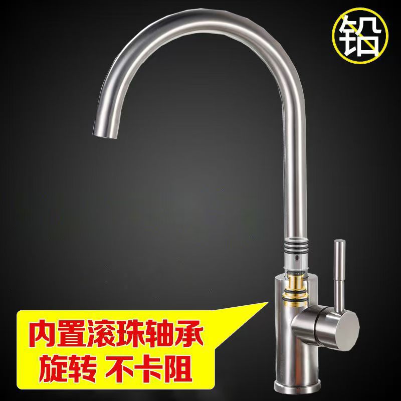 Keran Dapur Keran Panas dan Dingin Stainless Steel Tikungan Besar Stainless Steel Keran Keran Bisa Berputar
