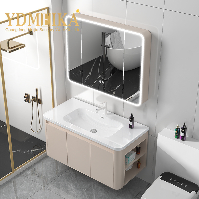 Sensor kulit batu qimene baskom terintegrasi kayu padat kabinet kamar mandi kombinasi cermin pintar lampu induksi kabinet utama emas Parkson kamar mandi H002