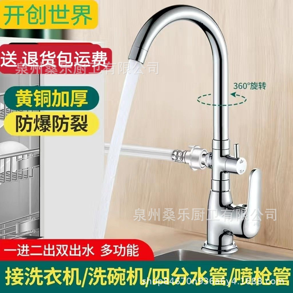 Keran dapur tembaga multifungsi, keran wastafel dapur, keran pel, semprotan tropis dingin bengkok tinggi