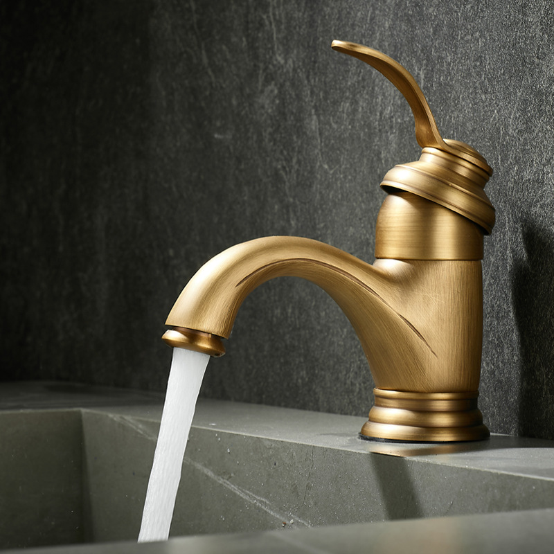 Baskom Cuci Tangan Antik Perunggu Keran Air Panas Dingin Baskom Cuci Wajah Kamar Mandi Gaya Eropa Retro Baskom Cuci Tangan