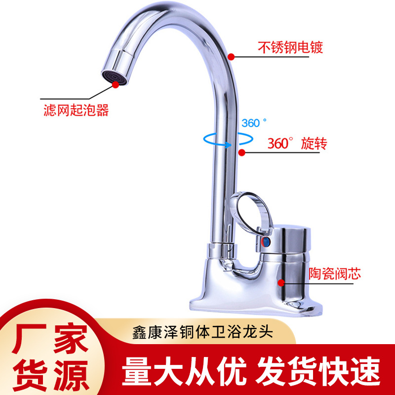 Pasokan xinkangze keran kamar mandi tembaga, air panas dan dingin, keran ganda, keran kamar mandi