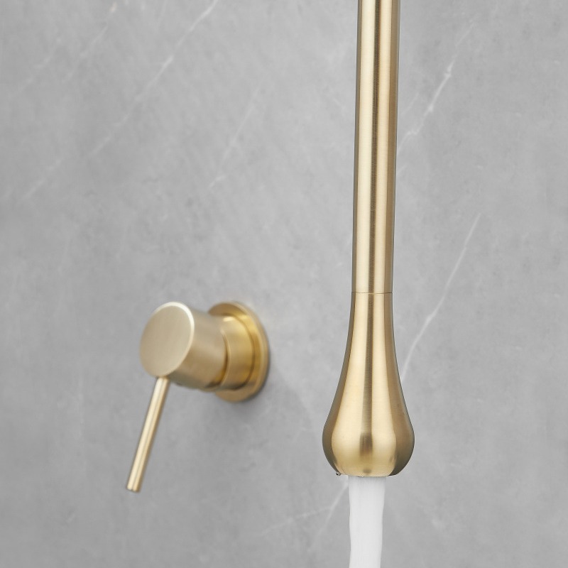 Wastafel dapur dinding, keran dingin tunggal, kolam pel lipat bisa ditarik, anti cipratan tembaga universal