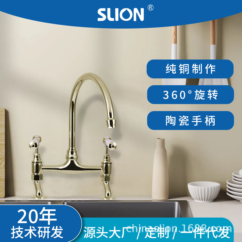 Shilin keran dapur pegangan ganda keramik kuningan penuh anti melepuh dapat diputar tabung ganda retro Inggris pekerja panas dan dingin