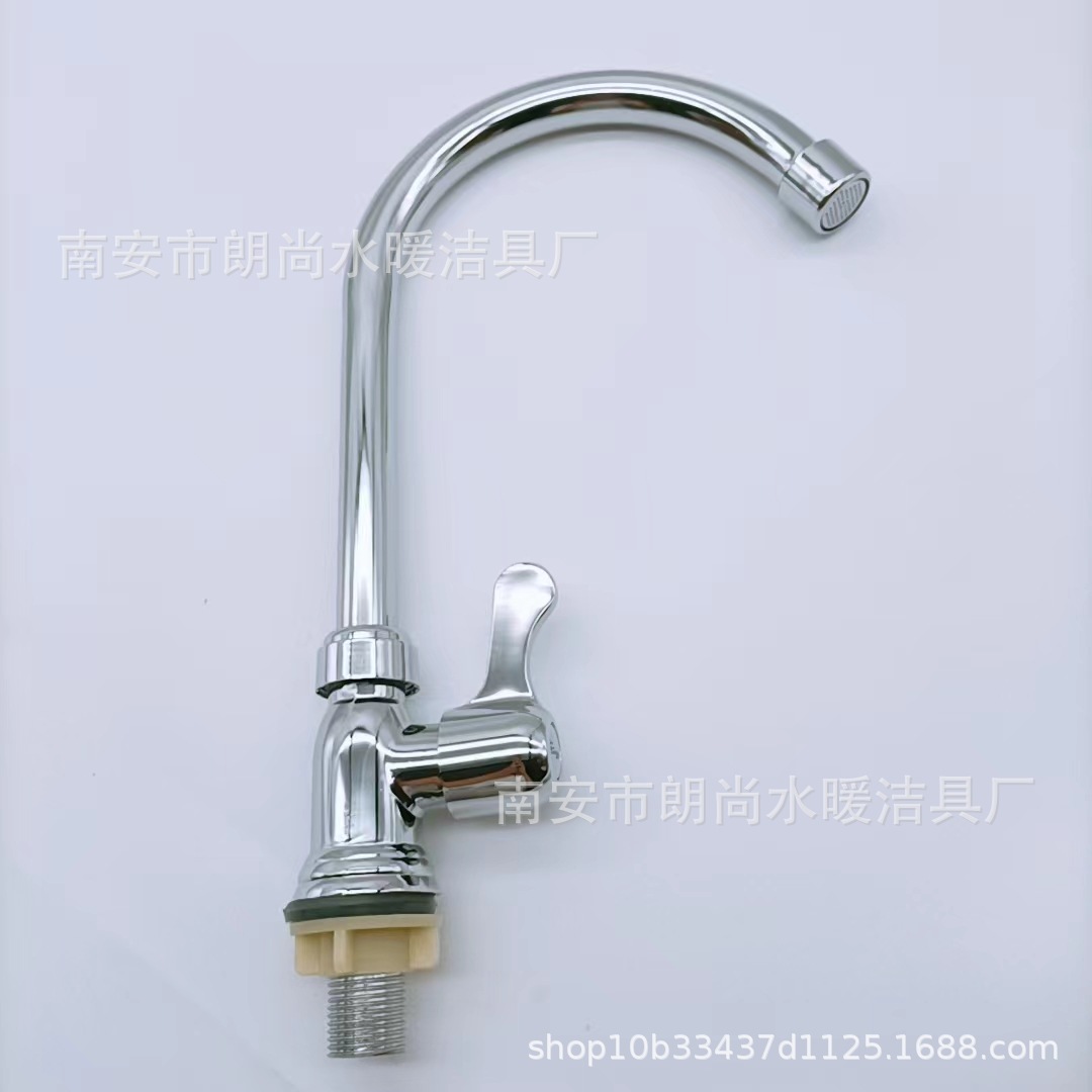 Keran dapur plastik gabungan, keran wastafel dingin tunggal melengkung besar, keran plastik vertikal dapat diputar untuk rumah tangga