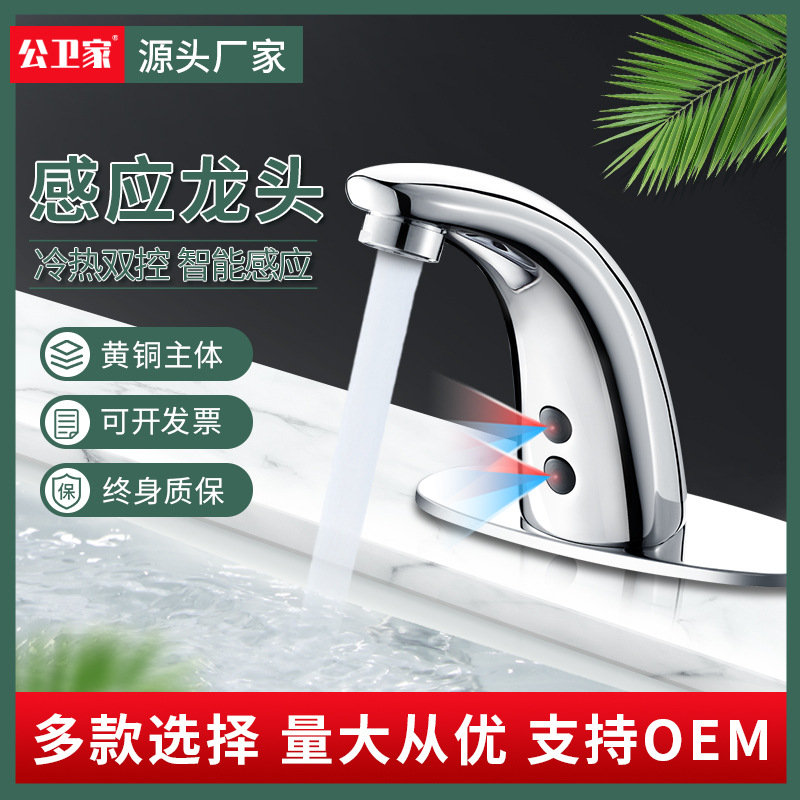 Keran induksi otomatis penuh, keran bak cuci tembaga, dispenser air panas dan dingin, induksi pintar, keran induksi otomatis penuh
