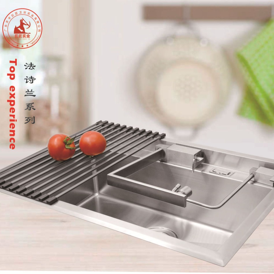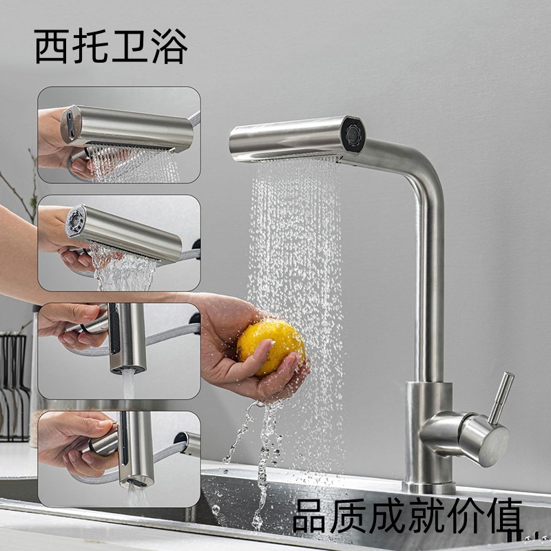 Lintas Batas 304 Stainless Steel Dapur Keran Keran Jenis Tarik Baskom Cuci Sayuran Wastafel Air Panas dan Dingin Empat Fungsi