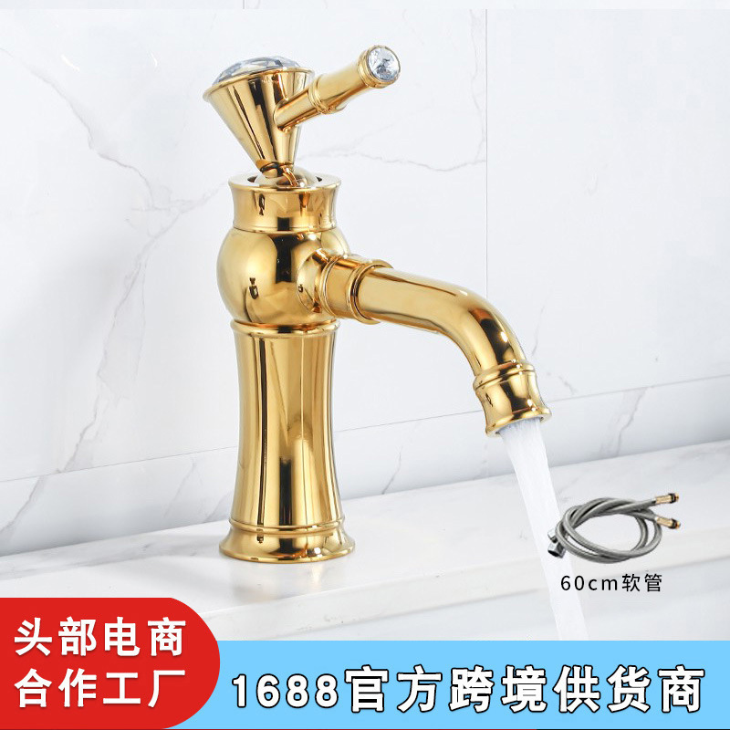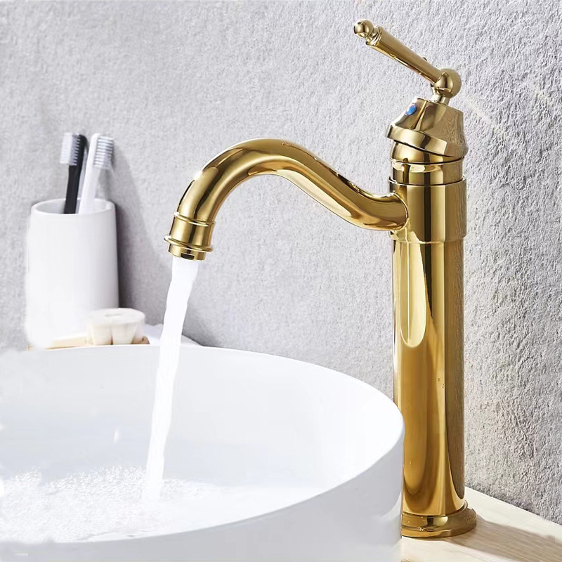 Keran wastafel Emas kamar mandi, keran kamar mandi tembaga, keran panas dan dingin atas bak cuci