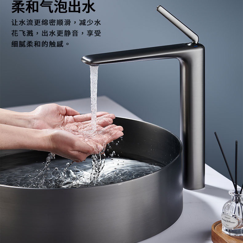 Keran wastafel kuningan 30mm pistol abu-abu electroplating keran panas dan dingin keran penghitung tinggi Apple lubang tunggal
