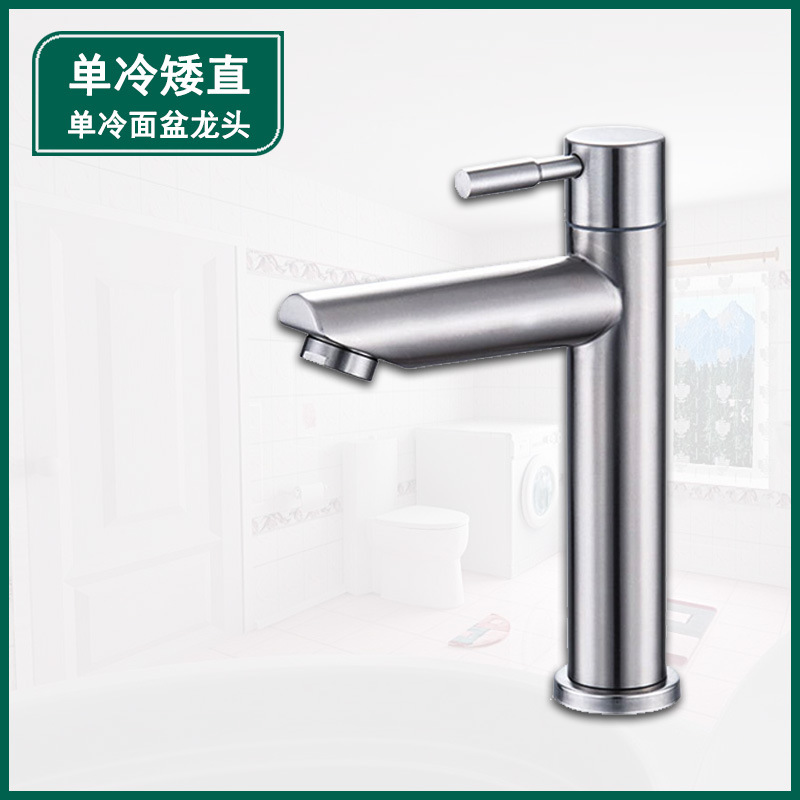 304 keran dingin tunggal baja tahan karat disikat, keran dingin tunggal, tahan percikan, wastafel kamar mandi, balkon, cuci tangan, lurus pendek dan dingin