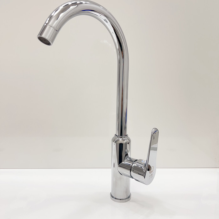 Qiqian keran wastafel sayuran lengkung kuat kepala botak tinggi baja tahan karat keran putar air panas dan dingin grosir