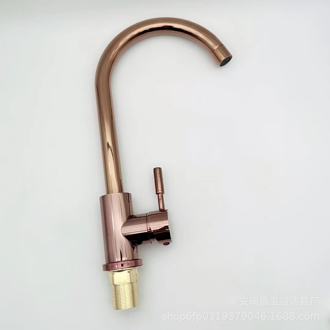 Keran dapur besi tahan karat emas mawar, keran dapur wastafel dapur air panas dan dingin keran melengkung besar