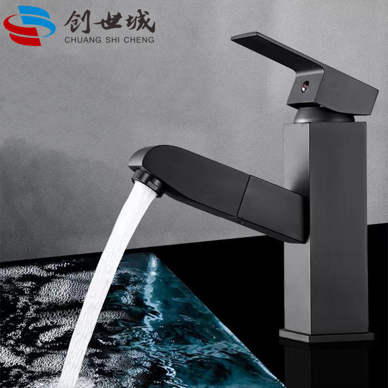 Keran air panas dan dingin bahan baja tahan karat, keran kamar mandi tahan percikan bisa ditarik warna hitam
