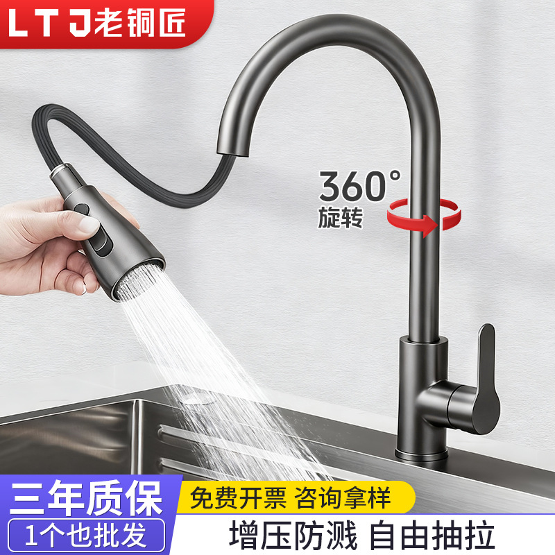 Keran tarik-out pembuat perunggu tua, keran dapur universal 304 stainless steel keran wastafel panas dan dingin penggunaan ganda