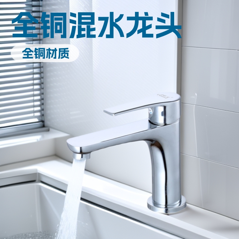 Keran cuci kamar mandi, keran tembaga katup pencampur panas dan dingin lubang tunggal wastafel tunggal
