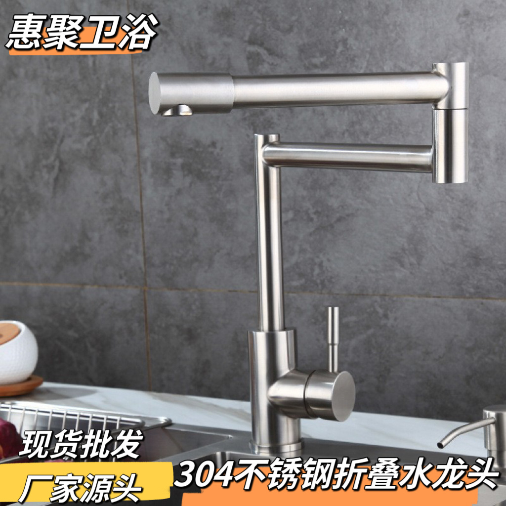 Keran lipat dapur stainless steel 304, keran air panas dan dingin universal bisa diputar
