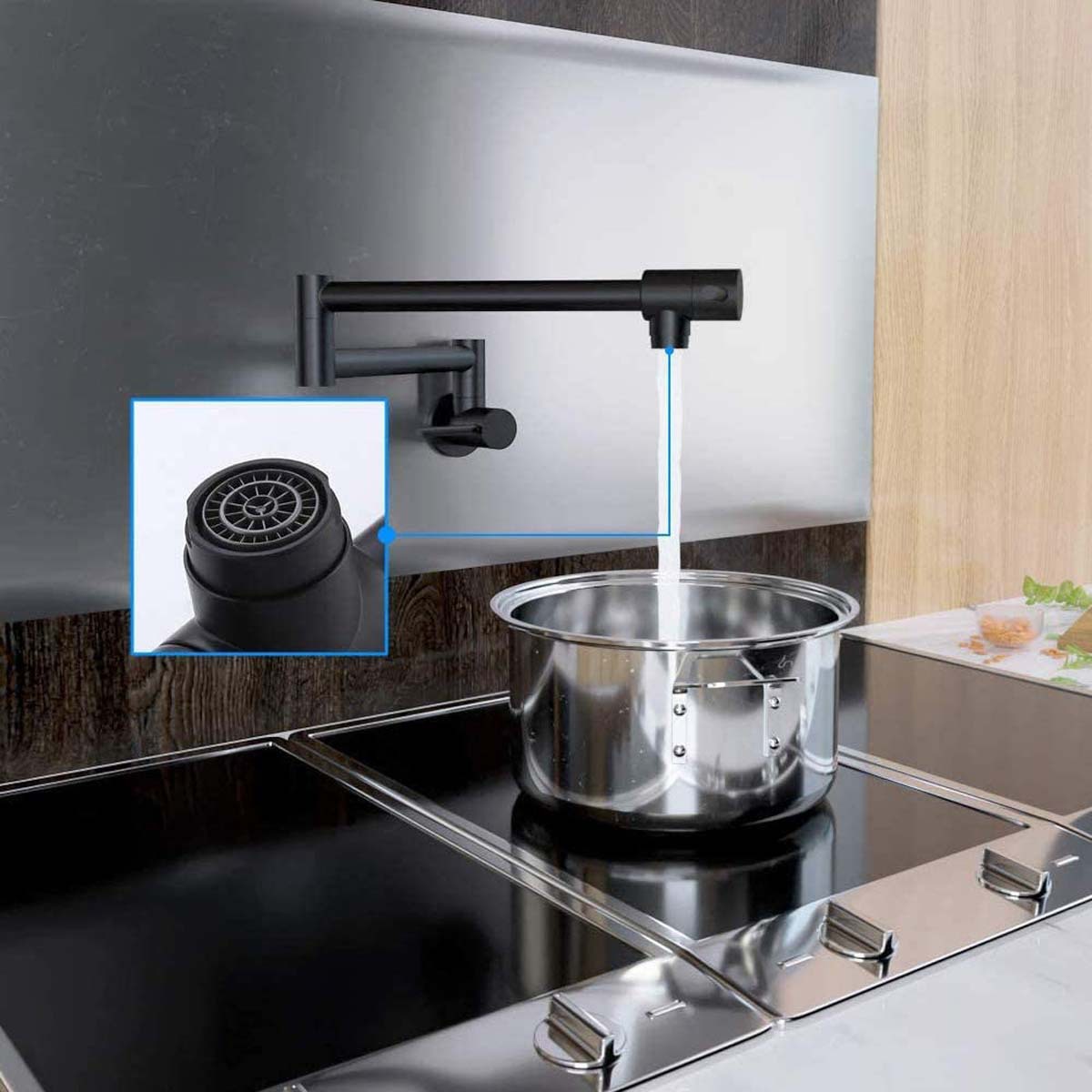 Keran dapur baja tahan karat 304 yang dipasang di dinding, keran air dingin tunggal lipat dengan pegangan ganda dan sakelar ganda yang dapat diputar untuk wastafel.