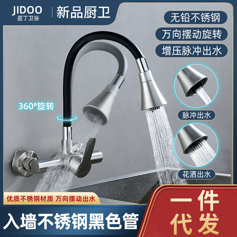 Keran dapur tahan karat universal pasang dinding baja tahan karat ekstensi tanam katup pencampur tahan percikan kolam cucian balkon