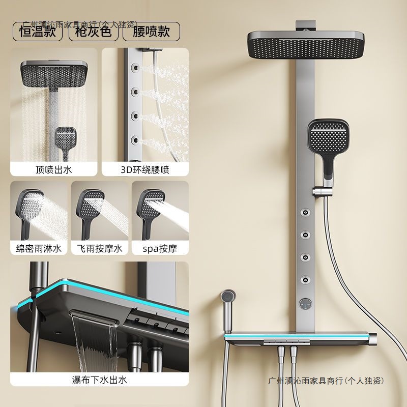 现代淋浴花洒套装家用数显增压精铜主体冷热恒温钢琴键可升