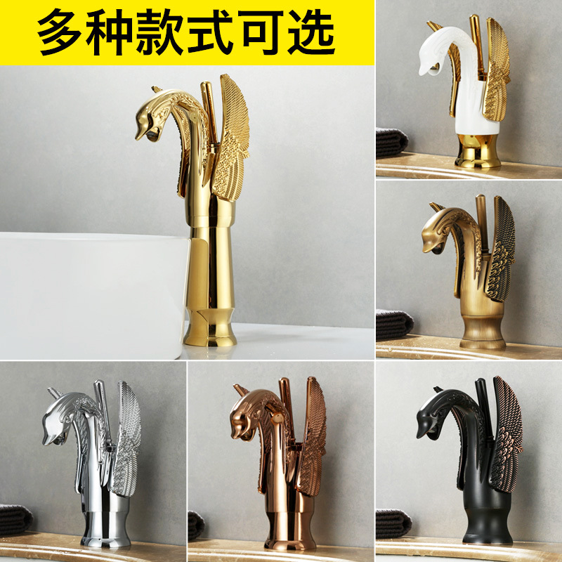 Keran antik bergaya Eropa, angsa panas dan dingin wastafel retro konter tembaga keran emas kabinet kamar mandi
