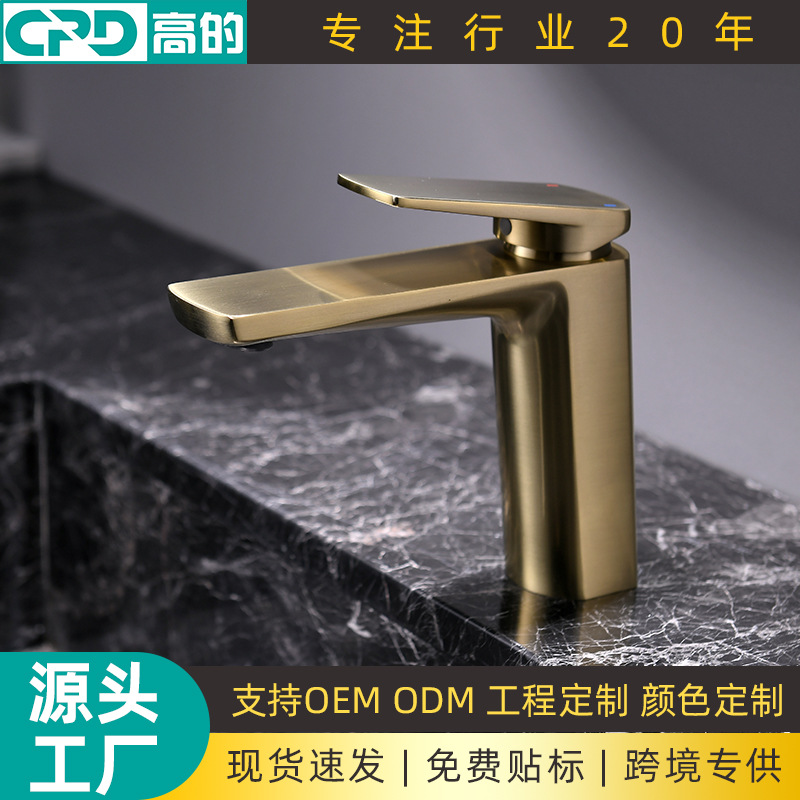 Keran wastafel, keran wastafel hitam emas, lubang tunggal, keran panas dan dingin sederhana, keran meja kabinet kamar mandi
