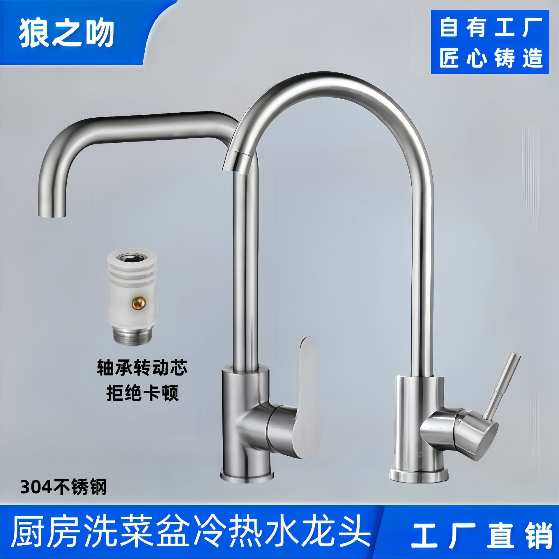 Keran dapur stainless steel, keran dapur tunggal wastafel stainless steel, keran panas dan dingin universal, keran rumah tangga
