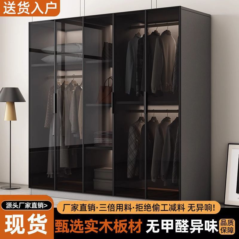 实木衣柜家用卧室玻璃门新款2025爆款储物柜子小户型出租房用衣橱