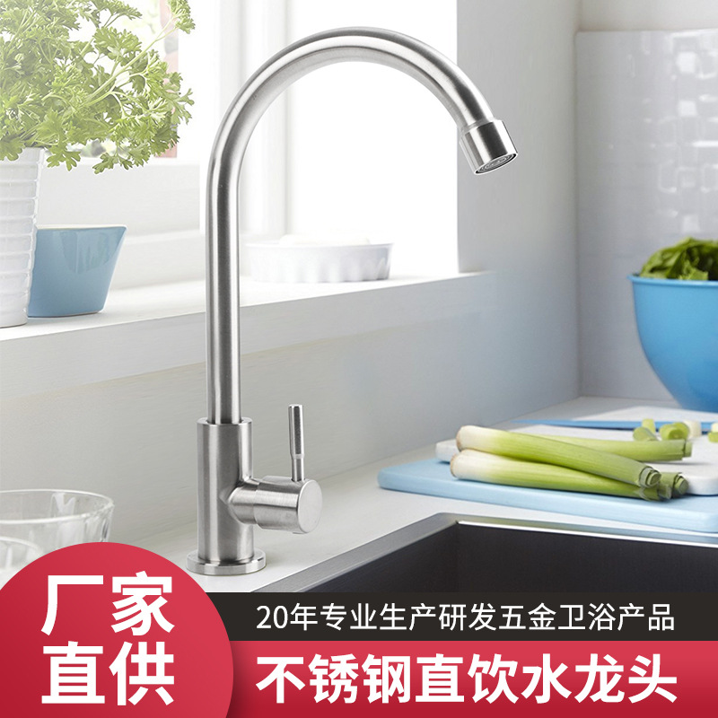 Taguo keran dapur 304 stainless steel, keran dingin tunggal berputar universal bak cuci sayuran kolam cucian 1 rumah tangga