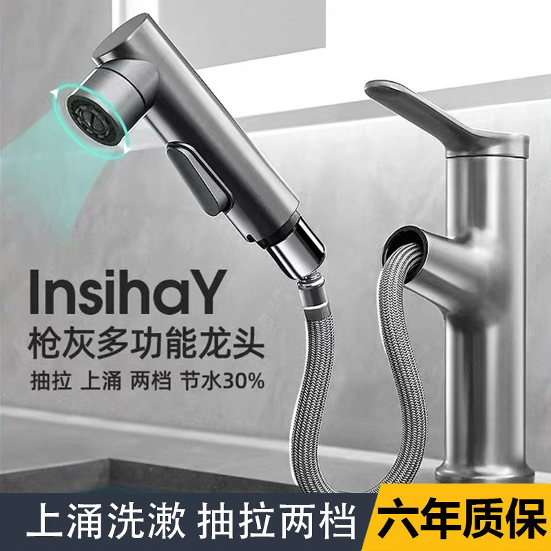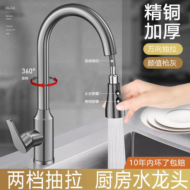Baja tahan karat 304 lintas batas Keran dapur anti cipratan, keran wastafel dengan fitur tarik keluar air panas dan dingin