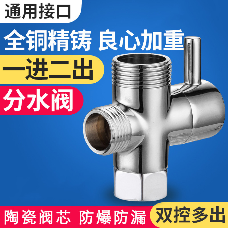 Pemisah air kepala pancuran tembaga, katup sudut tiga arah satu dalam dua outlet 4 titik 6 poin konektor katup antarmuka kawat internal dan eksternal