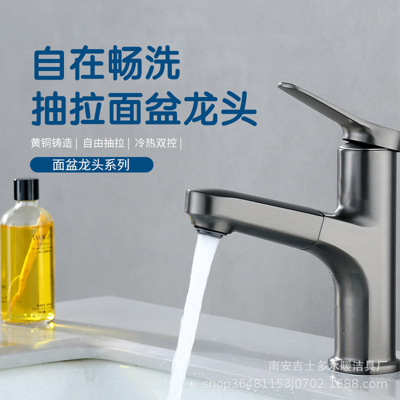 Pistol tembaga abu-abu pull-out keran lemari kamar mandi rumah tangga konter basin bak cuci keran panas dan dingin grosir