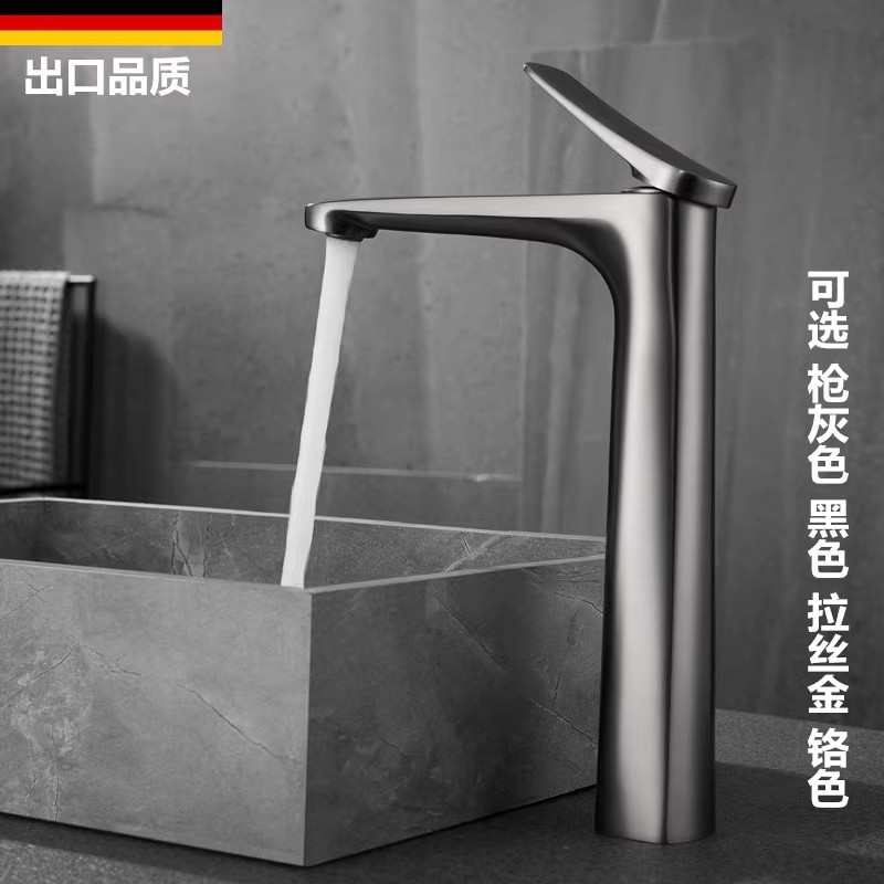 Pistol tembaga abu-abu keran wastafel pegangan tunggal kabinet kamar mandi tembaga meja emas disikat hitam panas dan dingin keran wastafel atas dan bawah