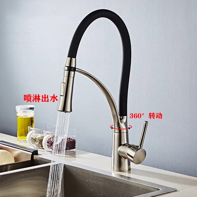 Keran dapur silikon tembaga, keran dapur dapat diputar gaya Eropa, keran dapur air panas dan dingin
