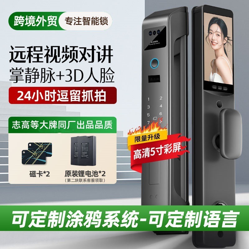 掌静脉3D人脸识别智能门锁密码锁指纹锁对讲智能锁监控跨境涂鸦
