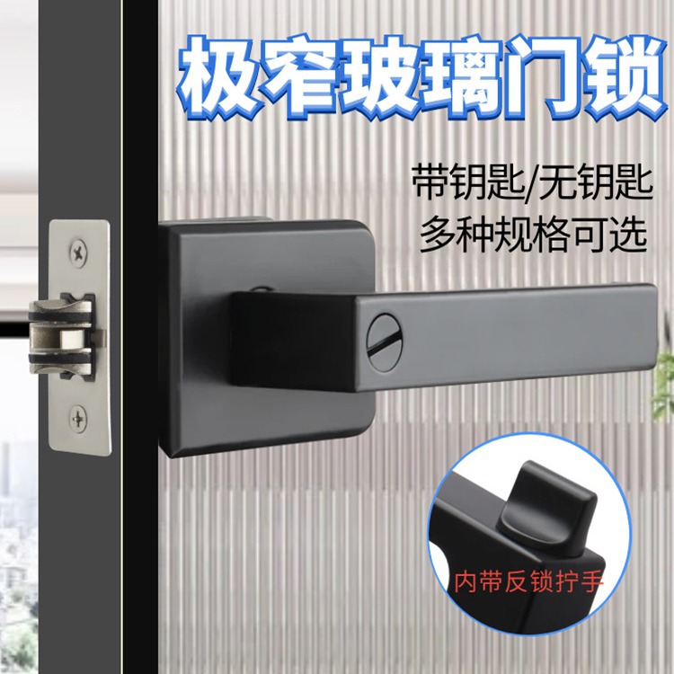 Kunci pintu dapur 25MM hitam sempit, kunci pintu kamar mandi aluminium Aloi pegangan toilet lidah tunggal pegangan tanpa kunci kunci kunci