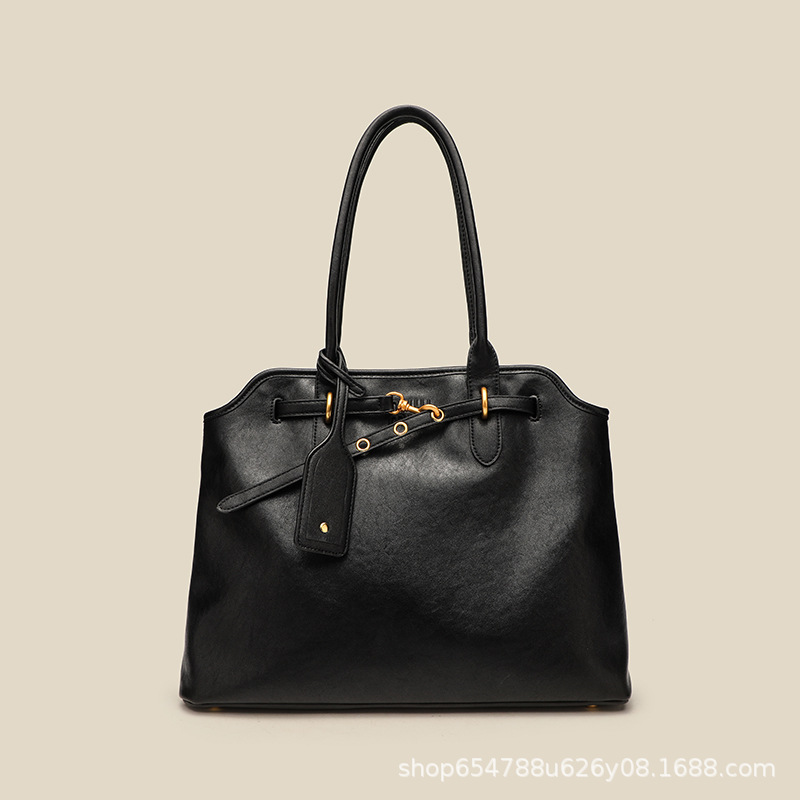 软皮大容量托特包2024新款腋下女包时尚高级感复古锁扣单肩大包包