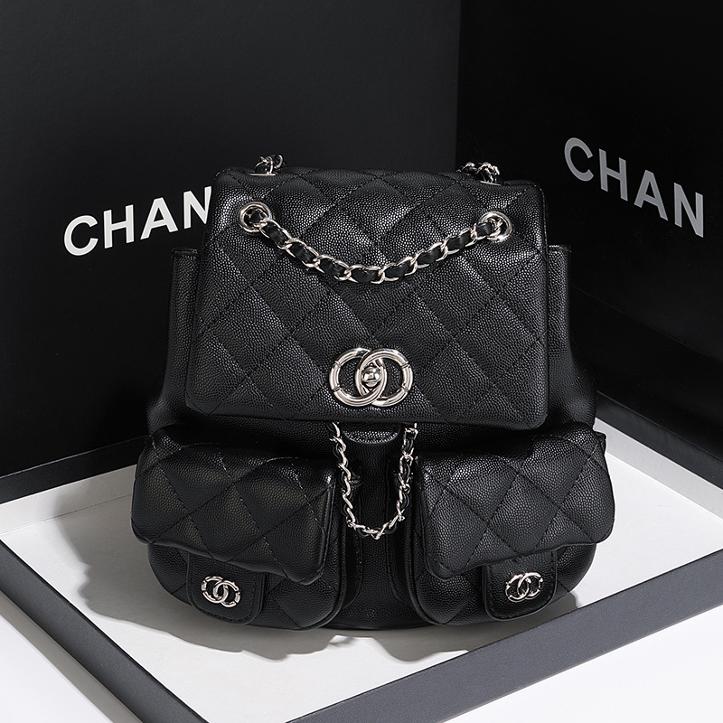 法式鱼子酱小香风链条双肩包可DIY锁扣时尚百搭链条轻奢双肩书包