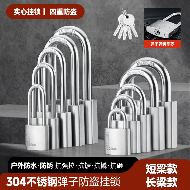 304 Gembok Stainless Steel Kunci Pintu Besar Tahan Air Rumah Tangga Kunci Anti Pencurian Kunci Luar Ruangan Kunci Pintu Gudang Kunci Satu Buka Kunci