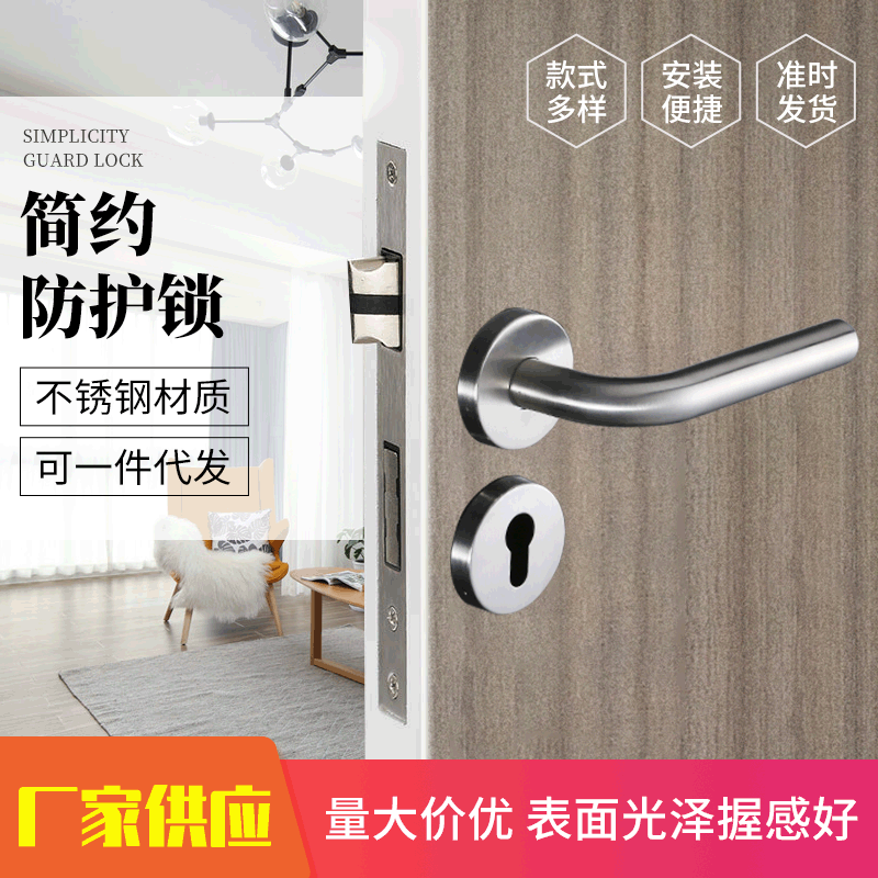 Kunci pintu dalam ruangan baja tahan karat, kunci pintu ruang kamar tidur, kunci pintu mekanis senyap, kunci pegangan pintu kayu baja tahan karat