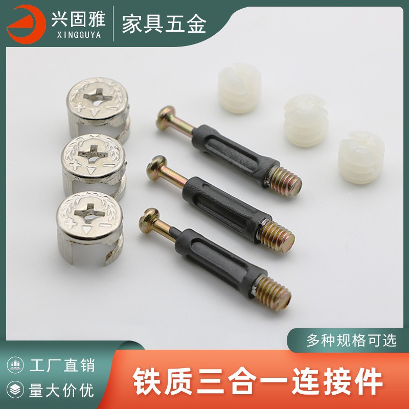 Kunci lemari konektor tiga-dalam-satu besi aksesori perangkat keras furnitur pengencang bongkar roda eksentrik tiga dalam satu