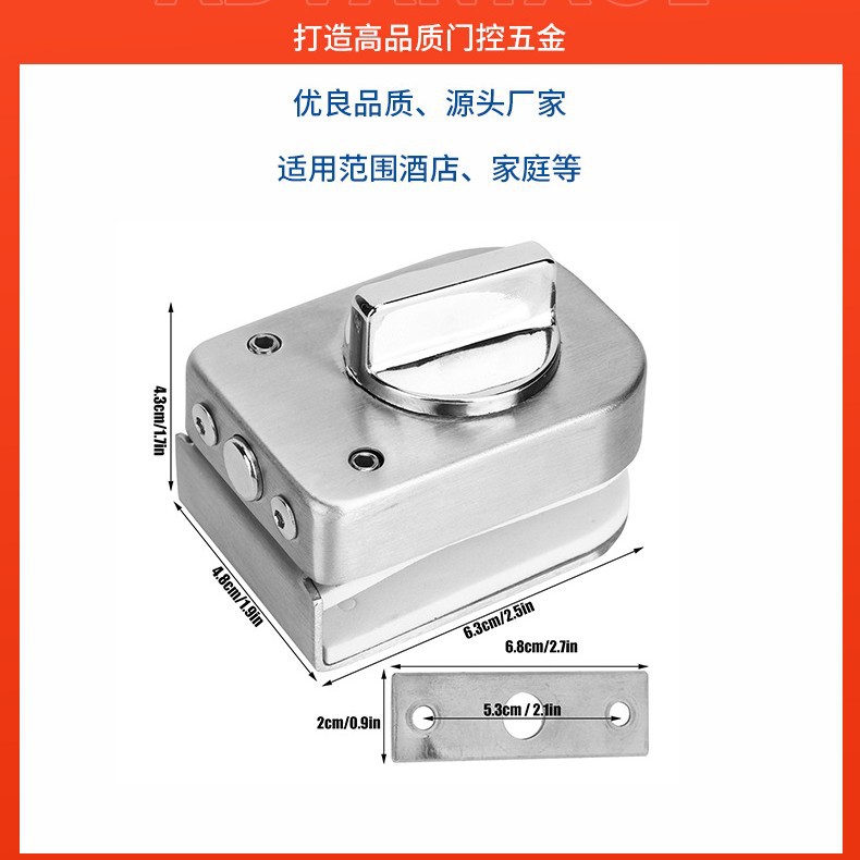 Grosir Pabrik kunci gerendel kaca lubang besi tahan karat bebas tanpa bingkai pintu kamar mandi tunggal dan ganda Buka kunci pintu dorong