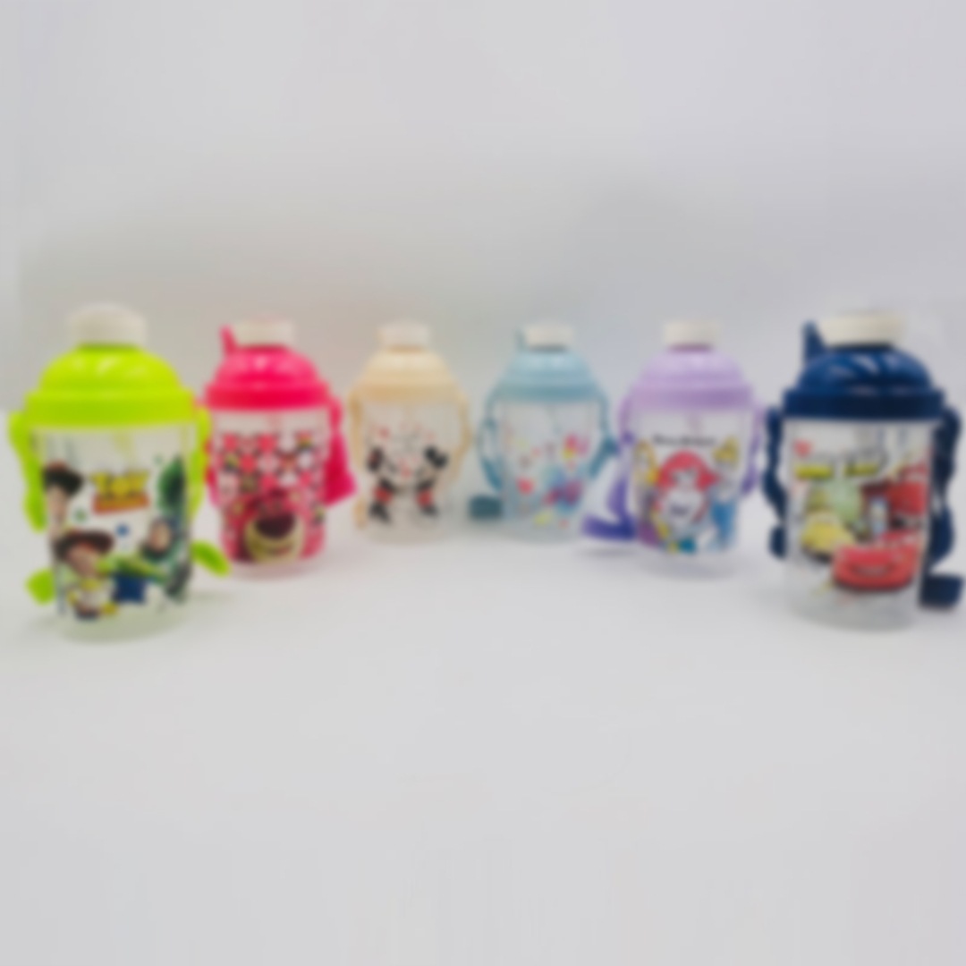 Cangkir sedotan plastik kartun anak-anak, olahraga luar ruangan, cangkir minum kreatif lucu portabel dengan kunci grosir