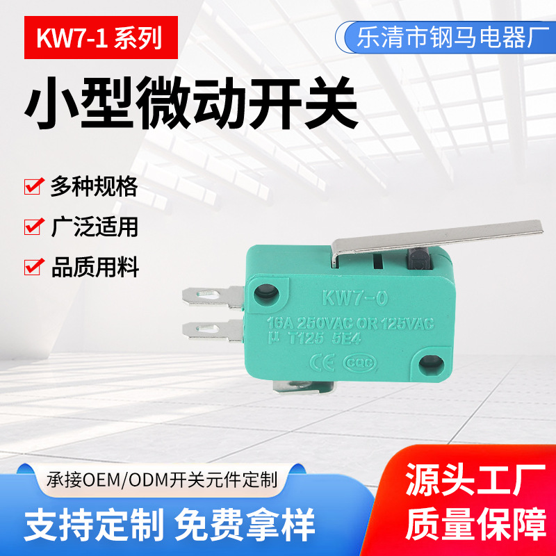 KW7-1 hijau saklar mikro elektronik perjalanan kecil saklar batas kunci pintu mobil dengan pegangan elemen saklar