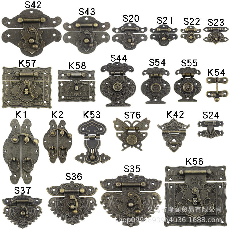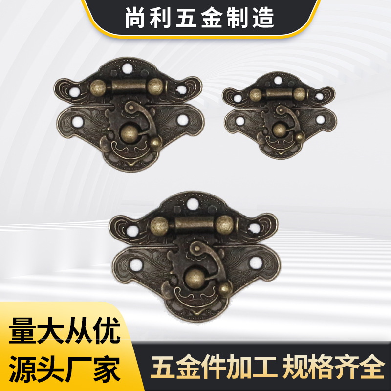 Pasokan langsung pabrik kotak kayu antik kunci gesper kotak logam campuran seng gesper dekorasi rumah gesper jamur kotak Engsel gesper