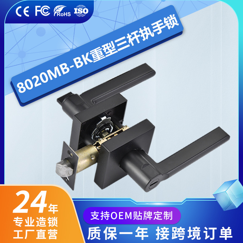 Kunci gagang tiga tiang tugas berat kunci pintu aluminium Aloi seng gagang pintu masuk baja tahan karat kunci gagang sandaran tangan hitam