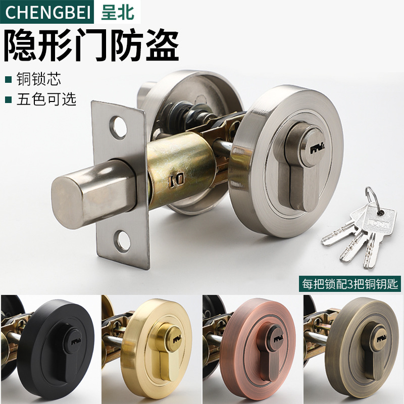 Kunci pintu tidak terlihat, kunci pintu rumah tangga tanpa kunci bahan Aloi seng, latar belakang pintu rumah tangga, kunci pintu tidak terlihat satu sisi Bundar untuk kamar tidur